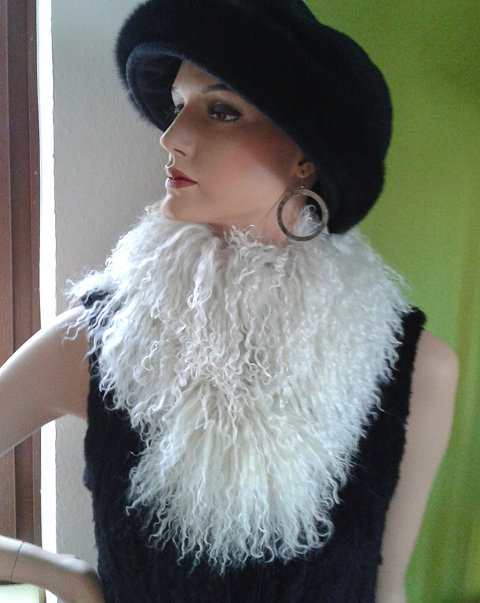 Sehr dekoratives Pelzaccessoire aus Tibetlamm. Handgefertigt im Kürschneratelier aus echtem Fell.