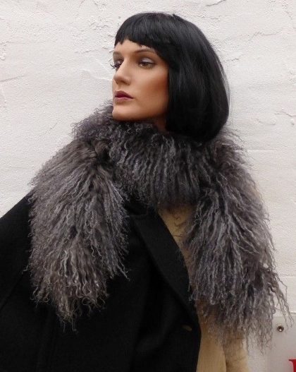 Sehr dekoratives Pelzaccessoire aus Tibetlammfell. Angefertigt im Kürschner-Atelier.