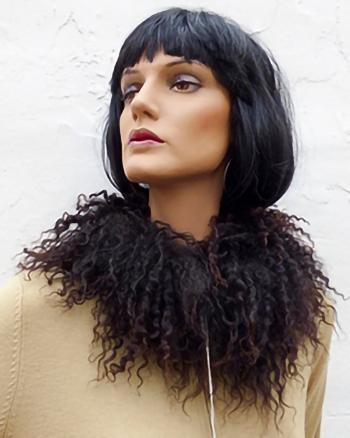 Naturbelassenes, lockiges, weiches Pelzaccessoire aus Gotland-Schaffell. Besticht durch seine natürliche Schönheit. Die Farbe ist ein dunkelbraun mit rotbraunem Anteil wie gewachsen.