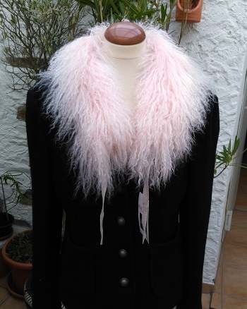 Sehr dekoratives Pelzaccessoire aus Tibetlamm. Handgefertigt im Kürschneratelier aus echtem Lammfell.